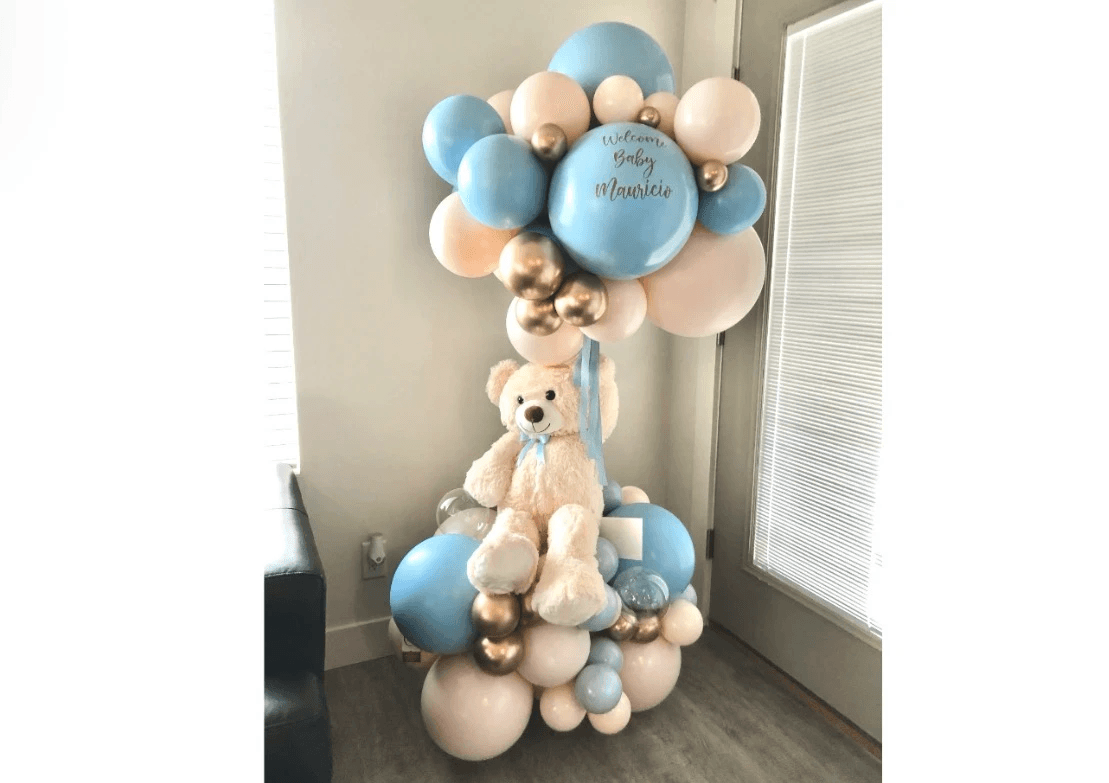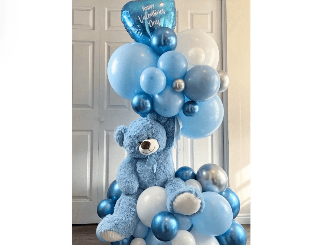 A Bear/Pushie Balloon Gift is a large arrangement (5-6ft tall) with different balloon sizes included. From surprising new parents and their baby, to celebrating a special birthday - or just because! ----Teddy bear price is $165 plus delivery